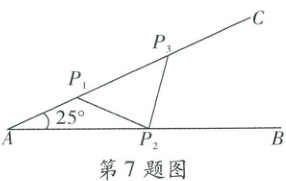 7. 如图所示为钢架的示意图,$ \angle A = 25^{\circ} $,焊上等长的钢条 $ P_1P_2 $,$ P_2P_3 $,…来加固钢架. 若 $ P_1A = P_1P_2 $,则这样的钢条至多需要(