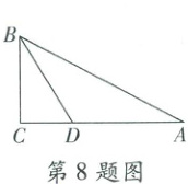 8. 如图,已知 $ \triangle ABC $ 中,$ \angle C = 90^{\circ} $,$ \angle A = 30^{\circ} $,$ BD $ 平分 $ \angle CBA $,且交 $ AC $ 于点 $ D $,$ AC = 1 $,那么 $ AD $ 的长是