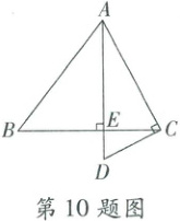 10. 如图,已知 $ AB = BC = AD $,$ AD \perp BC $ 于点 $ E $,$ AC \perp CD $,若 $ CD = \frac{3}{5} $,则 $ \triangle ACD $ 的面积为