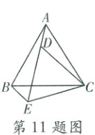11. 如图,$ \triangle ABC $,$ \triangle CDE $ 都是等边三角形,将 $ \triangle CDE $ 绕点 $ C $ 旋转,使得点 $ A $,$ D $,$ E $ 在同一直线上,连接 $ BE $. 若 $ BE = 1 $,$ AE = 4 $,则 $ CE $ 的长是