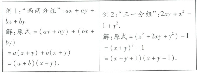 16. 阅读与思考:分组分解法指通过分组分解的方式来分解用提公因式法和公式法无法直接分解的多项式,比如:四项的多项式一般按照“两两”分组或“三一”分组,进行分组分解.