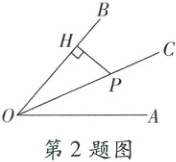 2. 如图,已知 $ OC $ 平分 $ \angle AOB $,$ P $ 是 $ OC $ 上一点,$ PH \perp OB $ 于点 $ H $,若 $ PH = 7 $,则点 $ P $ 与射线 $ OA $ 上某一点连线的长度可以是(