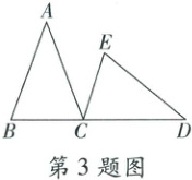 3. 如图,$ \triangle ABC \cong \triangle DEC $,$ A $ 和 $ D $,$ B $ 和 $ E $ 是对应点,点 $ B $,$ C $,$ D $ 在同一直线上,且 $ CE = 5 $,$ AC = 7 $,则 $ BD $ 的长为(