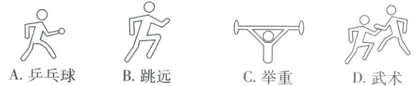 1. 我们生活在一个充满对称的世界中,生活中的轴对称图形随处可见,下面几幅图片是校园中运动场上代表体育项目的图标,其中可以看作是轴对称图形的是(