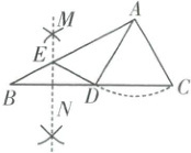 5. 如图,在$\triangle ABC$中,以点$A$为圆心,$AC$的长为半径作圆弧交$BC$于点$D$,再分别以点$B$和点$D$为圆心,大于$\frac{1}{2}BD$的长为半径作圆弧,两弧分别交于点$M$和点$N$,连接$MN$交$AB$于点$E$,连接$AD$,$ED$。若$AB = 9$,$AC = 7$,则$\triangle ADE$的周长为(