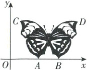 6. 剪纸是中国古代最古老的民间艺术之一。如图是一张蕴含着轴对称变换的蝴蝶剪纸,点$A$与点$B$对称,点$C$与点$D$对称,将其放置在直角坐标系中,点$A$,$B$,$C$的坐标分别为$(3,0)$,$(5,0)$,$(1,4)$,则点$D$的坐标为(