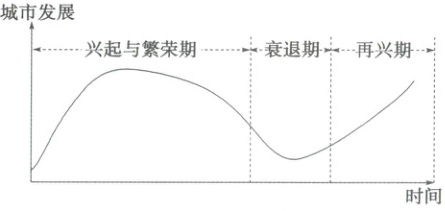 (2025·广东深圳·一模)印度尼西亚的沙哇伦多是十九世纪末因荷兰人开采煤炭而兴起的一座城市,吸引了印度尼西亚不同地区、不同民族的人口迁入。城市经历了兴起与繁荣、衰退与再兴。目前,该城市依托煤炭开采的遗产发展旅游业,逐渐成为印度尼西亚著名的采矿文化旅游城市。如图示意沙哇伦多城市发展生命周期。据此完成下面小题。
