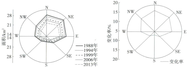 (2025·山东省日照市·一模)1961—2020年,青藏高原增温达0.35℃/10年,是全球气候变暖最强烈的地区之一。布加岗日地区位于西藏自治区东北部、唐古拉山脉东段,属半湿润高原季风区。如图示意布加岗日地区1988—2013年不同坡向冰川分布及变化率。据此完成下面小题。