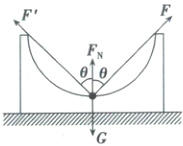 由于绳上拉力处处相等,所以有F = F',内壁截面为半圆形,由几何关系得θ = 45°,则Fcosθ + F'cosθ + F_N = G,当F_N = 0时,F有最大值,有F_mcos45° + F_mcos45° = G,解得F_m = $\frac{\sqrt{2}}{2}$G,故B项正确。