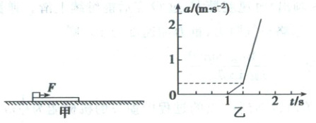 4. (2025·湖北省襄阳市高三二模)如图甲所示,质量为$M = 1.5kg$、足够长的木板静止在水平面上,质量为$m = 0.5kg$的物块静止于木板左端,木板与地面间的动摩擦因数为$\mu_{1}=0.1$。现用水平向右的拉力$F$拉动物块,拉力大小随时间的变化关系满足$F = kt$($k$为常量),物块的加速度$a$随时间$t$变化的图像如图乙所示。最大静摩擦力等于滑动摩擦力,取$g = 10m/s^{2}$,则