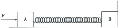 5. (2025·山东省济南市高三二模)如图所示,在水平面上有不同材料制成的物块$A$和物块$B$,$A$、$B$之间用轻弹簧拴接,物块$B$的右侧为固定挡板,物块$A$与水平面之间无摩擦,物块$B$与水平面之间的动摩擦因数为$\mu$,整个装置处于静止状态。现用水平恒力$F$向右推物块$A$,弹簧压缩最短时撤去外力,物块$A$被弹回,运动至最左端时,物块$B$所受的摩擦力恰好为最大静摩擦力。已知劲度系数为$k$的轻弹簧形变量为$x$时的弹性势能为$\frac{1}{2}kx^{2}$,重力加速度为$g$,物块$B$的质量为$m$,最大静摩擦力等于滑动摩擦力。下列说法正确的是
