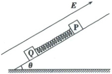 6. (2025·河北省石家庄市高三三模)(多选)如图所示,在倾角为$\theta$的固定绝缘斜面上,质量分别为$m_{1}$和$m_{2}$的两个物块$P$和$Q$用与斜面平行的绝缘轻质弹簧相连接,弹簧劲度系数为$k$,带电物块$P$下表面光滑,不带电物块$Q$下表面粗糙。初始时物块$P$和$Q$静止在斜面上,物块$Q$恰好不下滑。现在该空间加上沿斜面向上的匀强电场,物块$P$开始沿斜面向上运动,运动到最高点$A$时,物块$Q$恰好不上滑。下列说法正确的是