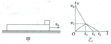 5. (2025·河北省邢台市高三三模)一个质量为M=2kg的长木板静止在粗糙水平地面上,木板右端静止一个质量为m=2kg的小物块,小物块可视为质点,如图甲所示。某时刻,给长木板一个方向水平向右、大小为I=8N·s的冲量,此后小物块和长木板运动的v-t图像如图乙所示,且小物块始终没有滑离长木板,若已知图中t₁=0.4s,v₁=0.8m/s,小物块与长木板间的动摩擦因数为μ₁,长木板与地面间的动摩擦因数为μ₂,重力加速度g=10m/s²,则从初始到二者最终停下的整个过程中,下列说法正确的是(