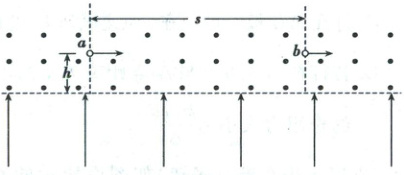 (2)根据题意,由对称性可知,粒子射出电场时,速度大小仍为$v_{0}$,方向与水平虚线的夹角为$60^{\circ}$,由几何关系可得:$x = r\sin\theta = 2h\sin 60^{\circ}=\sqrt{3}h$,根据对称性可知,粒子离开电场达到$b$点时的水平位移也为$x = \sqrt{3}h$,粒子在电场中运动的水平位置$x' = 3\sqrt{3}h - 2x = \sqrt{3}h$,则粒子在电场中的运动时间为:$t=\frac{x'}{v_{0}\cos\theta}=\frac{2\sqrt{3}h}{v_{0}}$,沿电场方向上,由牛顿第二定律有:$qE = ma$,由运动学公式有:$-v_{0}\sin\theta = v_{0}\sin\theta - at$,联立解得:$E=\frac{mv_{0}^{2}}{2qh}$;