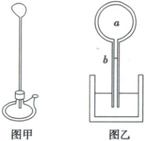 6. (2025·云南卷)(多选)图甲为$1593$年伽利略发明的人类历史上第一支温度计,其原理如图乙所示。硬质玻璃泡$a$内封有一定质量的气体(视为理想气体),与$a$相连的$b$管插在水槽中固定,$b$管中液面高度会随环境温度变化而变化。设$b$管的体积与$a$泡的体积相比可忽略不计,在标准大气压$p_0$下,$b$管上的刻度可以直接读出环境温度。则在$p_0$下(