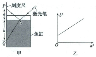 6.小明利用家里的鱼缸测量水的折射率。如图甲所示,在鱼缸中左侧竖直放置刻度尺,激光笔从水面口点