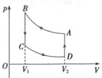 的理想气体经过ABCDA的循环过程,A→B和C→D是等温线,B→C和D→A是等容线,气体在两个