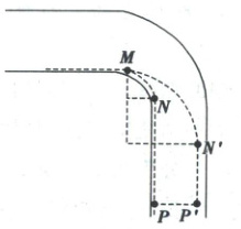 度,赛车从M点按照MNP路线到P点与按照MN'P'路线运动到P'点的时间差为 (