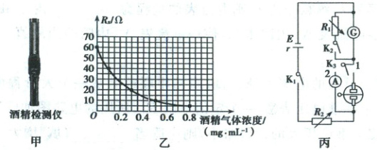 (2)将图丙中开关K、K2合上,而将K3拨到1处,某次在实验室中测试酒精气体浓度时,表头指针指