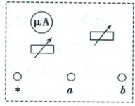 (以公共接线柱*为起点,*与a之间并联微安表和R1;*与b之间为上述并联电路串联R2)
