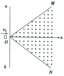 15. (12分)(2025·四川省雅安市高三二模)如图所示,顶角为$74^{\circ}$足够长的等腰三角形金属轨道$MON$水平固定在方向竖直向上,磁感应强度$B = \frac{1}{3}T$的匀强磁场中,沿轨道角平分线方向建立坐标轴$Ox$。质量$m = 0.01kg$且足够长的金属棒$ab$静止放在轨道上,其中点与$O$点重合。质量为$M = 0.04kg$的绝缘物块沿$Ox$方向以速度$v_0 = 0.25m/s$与金属棒$ab$发生碰撞并迅速粘在一起,之后一起在轨道上做减速运动。金属棒与坐标轴$Ox$始终垂直,与轨道始终接触良好。已知金属棒与导轨单位长度电阻值均为$r = 0.125\Omega$,不计一切摩擦阻力,$\sin37^{\circ} = 0.6$,$\cos37^{\circ} = 0.8$。求: