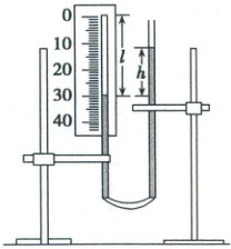 ①用两铁架台竖直固定$U$形管的左右两管,待管内水银柱稳定时,读出空气柱的长度$l$和$U$形管左右水银面的高度差$h$,此时封闭气体的压强$p=$