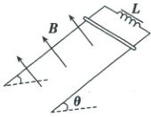 10. (2025·山东省青岛、淄博两市高三二模)如图所示,间距为$d$的足够长平行光滑金属导轨倾斜放置,导轨倾角为$\theta$,导轨上端接有自感系数为$L$的电感线圈,质量为$m$、长度为$d$的金属棒垂直导轨放置,导轨处于垂直导轨平面向上、磁感应强度为$B$的匀强磁场中,金属棒与导轨接触良好,重力加速度为$g$,不考虑电磁辐射,电感线圈的直流电阻和金属棒及导轨的电阻均不计。$t=0$时刻将金属棒从导轨上某处静止释放,在金属棒运动过程中,下列说法正确的是(