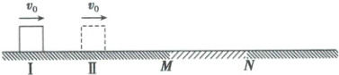 2. (2025·云南卷)如图所示,质量为m的滑块(视为质点)与水平面上MN段的动摩擦因数为μ₁,与其余部分的动摩擦因数为μ₂,且μ₁>μ₂。第一次,滑块从Ⅰ位置以速度v₀向右滑动,通过MN段后停在水平面上的某一位置,整个运动过程中,滑块的位移大小为x₁,所用时间为t₁;第二次,滑块从Ⅱ位置以相同速度v₀向右滑动,通过MN段后停在水平面上的另一位置,整个运动过程中,滑块的位移大小为x₂,所用时间为t₂。忽略空气阻力,则(