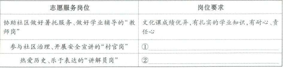 (2)经验证信息确实为真。本次志愿服务活动共设有三个志愿服务岗位,为促进志愿服务活动的有效开展,请完善岗位要求。(4 分)