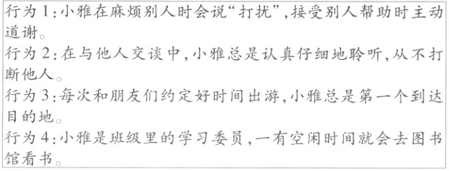 7. “文明有礼、温和谦恭”,这是老师和同学们眼中的小雅。以下小雅的行为中,与上述评价相符的是(