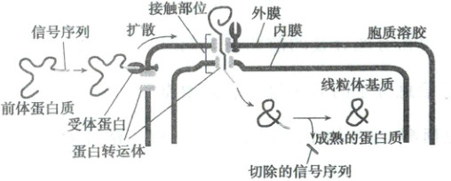 )A.前体蛋白质由游离型核糖体合成后通过蛋白转运体穿过线粒体内、外膜
