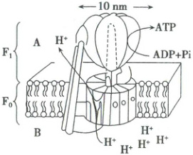 4. (2025·江苏宿迁·模拟预测)图为ATP合酶结构,包括F₁头部和F₀跨膜H载体两部分构成,相关叙述错误的是(
