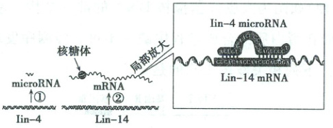 8. (2025·广东广州·三模)2024年诺贝尔生理学或医学奖授予了发现微小核糖核酸(microRNA)及其在转录后基因调控中的作用的两位科学家。如图为真核生物秀丽隐杆线虫In-4基因的microRNA抑制Lin-14基因表达的过程。下列有关说法正确的是(