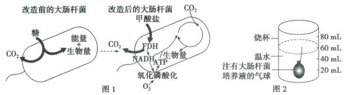 为原料合成有机物。(2)由题意可知,改造前的大肠杆菌的呼吸方式为________,可利用如图 $ 2 $ 所示的实验装置进行验证,操作如下: