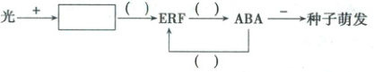 (5)由实验结果可知,phyA激活的条件下ERF蛋白能够促进ABA的合成,抑制种子的萌发;添加外源ABA后,野生型拟南芥植株中ERFmRNA的含量显著高于对照组,说明ABA能促进ERF的合成。综合上述实验结果,光、植物激素调控种子萌发的调控机制模式图见答案。