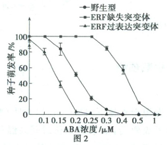 (3)为了进一步探究ERF蛋白影响种子萌发的机制,科研人员用不同浓度的脱落酸(ABA)分别处理上述不同组拟南芥的种子,统计种子萌发率,如图2。结果说明ERF蛋白提高了拟南芥种子对外源ABA的