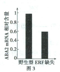 (4)进一步检测ERF缺失突变体种子中ABA2(一种脱落酸合成酶)的mRNA含量,结果见图3。结合图3结果、相关信息和知识,解释图2中ERF缺失突变体种子萌发率变化的原因。____。