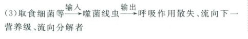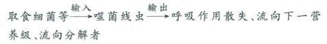(3)噬菌线虫取食细菌等获得能量,一部分能量用于自身呼吸作用以热能形式散失,一部分能量流向下一营养级,还有一部分能量流向分解者。示意图如下: