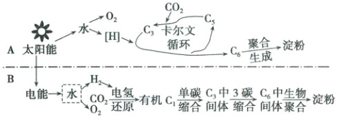 。研究者在人工合成淀粉过程中,首先利用太阳能发电,然后利用电能制[H](或H₂)