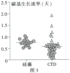 (4)据图3可知,CTD和宿主具有相近的碳基生长速率,说明二者的生长速率接近,结合显微镜的观察结果,硅藻细胞内的CTD数量稳定,且硅藻分裂时CTD数量倍增,说明二者在亲代和子代之间保持了数量的稳定性,也即两者在生长和增殖过程中存在同步协调机制,而这种机制便于维持共生关系的长期稳定。