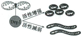 1. (2025·湖南长沙·一模)线粒体的分裂,主要发生在进行分裂的细胞中,需要动力相关蛋白Drpl酶的参与(核基因编码,发挥作用时会从细胞质基质转移到线粒体表面)。蛋白磷酸化酶PP2Aa可使Drpl蛋白发生磷酸化,进而抑制其活性,使得线粒体处于功能更强的长杆状。而RalA酶可与PP2Aa相互作用,解除Drpl的磷酸化,增强其活性,使线粒体过度分裂,体积减小呈球形(如右图),进而抑制其氧化功能。研究还发现肥胖个体的脂肪细胞中更容易出现体积减小的碎片化线粒体。结合相关信息,下列相关叙述错误的有(