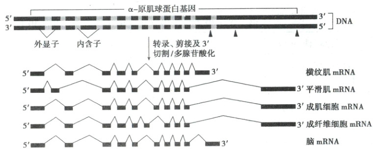 A.$\alpha$-原肌球蛋白基因通过选择性剪接产生多种mRNA,进而编码相同的蛋白质