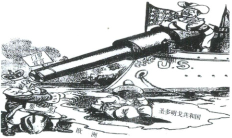 7.D 漫画中美国以“门罗宣言”为工具,宣称美洲是美洲人的美洲,阻止欧洲干涉,实质是美国将拉美视为自己的势力范围,进行控制和干涉,这表明拉美地区虽然在一定程度上摆脱了欧洲殖民统治,但又面临美国新的侵略和控制,所以还需要继续进行民族民主革命,故选D项;漫画主要体现的是美国针对拉美地区的态度和行动,与美欧关系无关联,排除A项;漫画重点是美国对拉美地区的干涉,而非瓜分世界的狂潮,排除B项;1905年欧洲为中心的国际格局尚未动摇,排除C项。