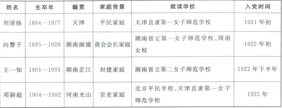 47. 下面是中国共产党成立早期部分女性党员的个人情况简表。据表可知