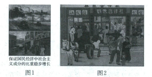 判断依据:综合两幅图中的图文信息:“保证国民经济中社会主义成分的比重稳步增长”“群众合作社”、群众参与合作社经济活动的场景等,可知,两幅图共同体现了社会主义改造时期,国家组织农民和个体劳动者加入合作社,实现生产资料公有化、生产经营集体化,以确立生产资料公有制的重大举措。