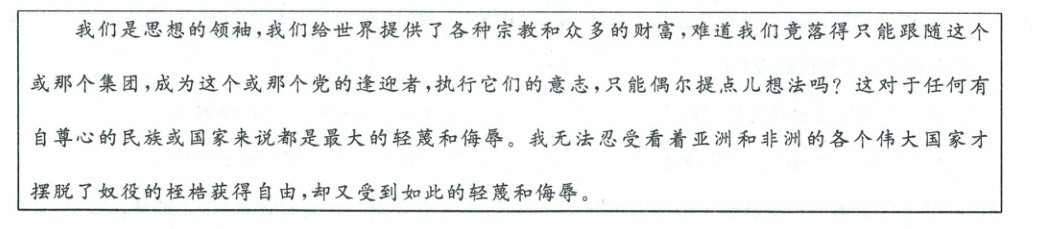 15. (2025·河南漯河名校三模·16)如图为印度总理尼赫鲁在1955年亚非会议的讲话片段。它体现出(