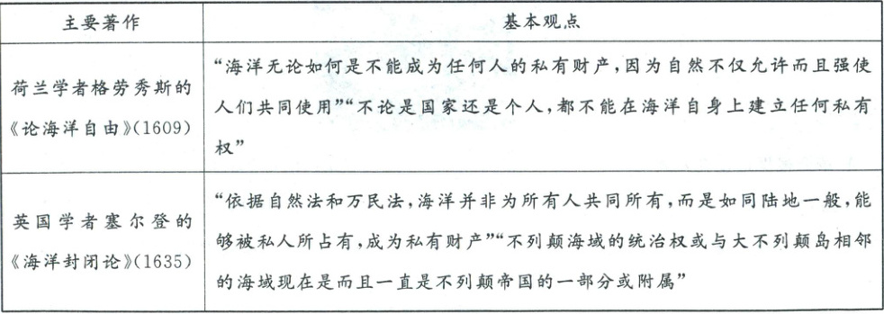 12. (2025·山东泰安四模·12)英荷学者对于海洋的主权有不同的阐述。下表双方观点的分歧体现了当时英荷两国(