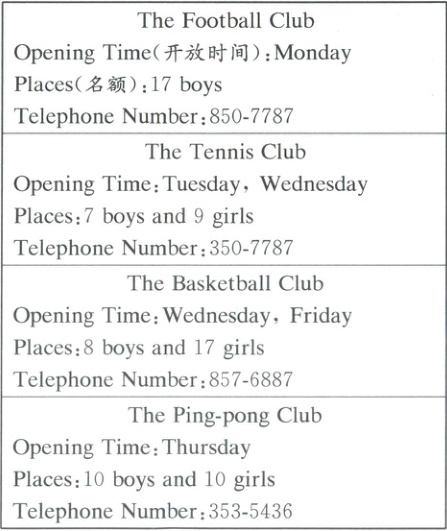 )24. What can we know about the Ping-pong Club?A. It's open one day a week.