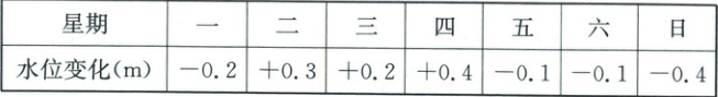 (2)由(-0.2) + 0.3 + 0.2 + 0.4 + (-0.1) + (-0.1) + (-0.4) = 0.1(m),可知本周水位总体上看,比上周升了0.1m.