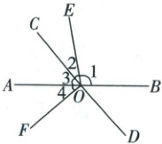 20. (9 分)如图所示,$AB$,$CD$ 相交于点 $O$,$\angle FOC=90^{\circ}$,$\angle 1=100^{\circ}$,$\angle 2=30^{\circ}$,求 $\angle 3$ 和 $\angle 4$ 的度数.